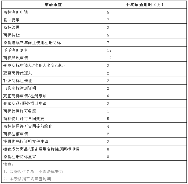 以下,發(fā)思特專利商標代理有限公司整理了國家知識產(chǎn)權(quán)局商標局各種商標申請業(yè)務(wù)的平均審查用時,詳情如下,敬請知悉: