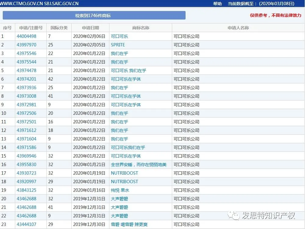 截至目前,可口可樂公司名下?lián)碛小翱煽诳蓸贰薄ⅰ把┍獭?、“冰露?700多件商標(biāo),基本完成了對整個品牌體系和下屬的多個產(chǎn)品線的完整保護(hù),且這個數(shù)字仍在不斷增加。